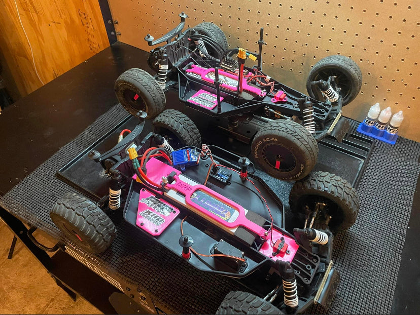 We offer a large range of products targeted towards the 1/10th R/C dirt oval. As you probably know by now, 99% of our products are 3D printed, and more info on our materials can be found at the "Material Info" section at the top menu. Anyways, we offer products for popular brands such as Traxxas, Custom Works, and MIP. Our most popular products are our 3D printed fan mount for the two wheel drive Traxxas slash at over 300 sold and twenty 5-star reviews. Our toe and camber 1/10th scale setup plates have also been an extremely popular product, with a very universal design they can be used on S/C trucks and buggies from Losi, Team Associated, Traxxas, Custom Works, GFRP, and more! We also have a growing collection of organzational items to better help keep you on track and focused on what is important. Offer stands for Custom Works Outlaw sprint car, and their Rocket Late Models. We alsooffer stands for Traxxas products such as the HCG slash, LCG slash, and bandit. Check all the aforementioned products our by clicking the button below!